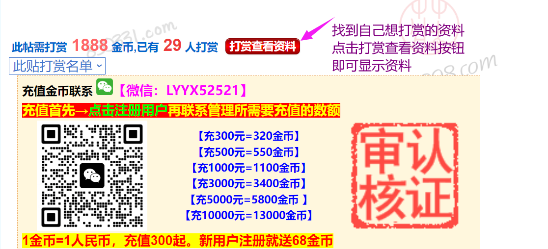 按照以上图片操作完成之后联系平台客服进行对你注册的用户名充值金币!平台所有资料保证真真实实;不会存在任何欺骗或假资料之类的。连打赏同一份资料两次出现连错的情况下;平台都会补一次金币到你用户里。大家可以放心打赏!